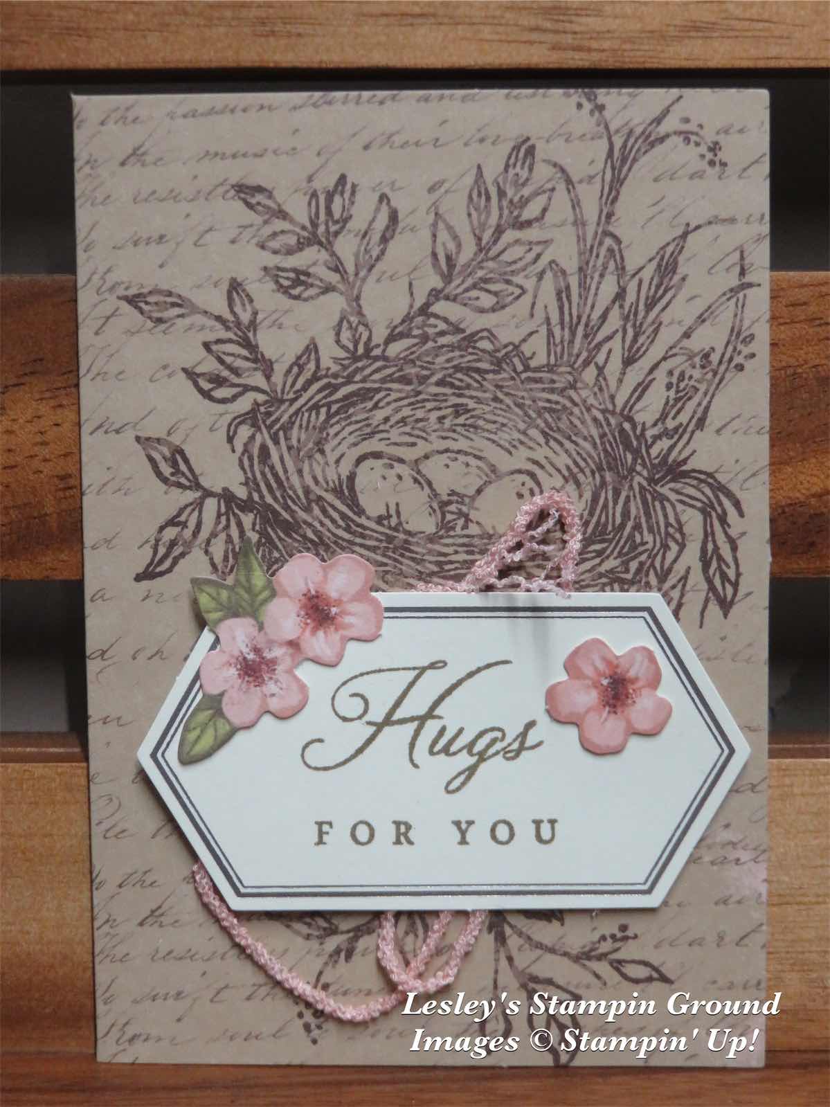 Most of you have probably heard of Paper Pumpkin from Stampin’ Up!, but unfortunately we don’t get it here in Australia. Well, great news!! We will for a limited time get a very special edition Paper Pumpkin kit - Hugs From Shelli (#152032) and it is available from 15th May. Here is one of the cards which can be made from the kit. We were able to make this beautiful card at On Stage. “This kit is elegant, feminine and full of natural details” and inspired by Shelli.